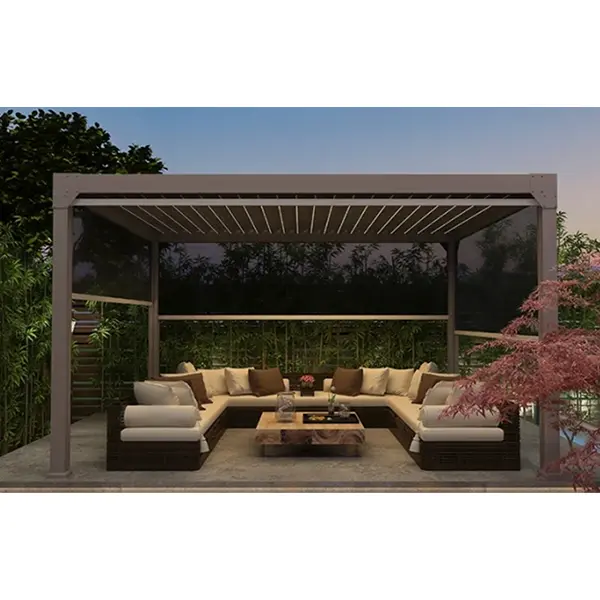 Як професійний виробник альтанок, ми впроваджуємо ретельний дизайн у наші електричні висувні альтанки, поєднуючи імпортні безшумні двигуни та приховану дренажну систему. Це гарантує, що наші альтанки володіють основними характеристиками інтелектуального керування, структурної стабільності та стійкості до погодних умов, а також підтримують індивідуальне налаштування розміру, кольору та функціональних модулів. Вони можуть інтегрувати такі аксесуари, як освітлення та рулонні штори, адаптуючись до різноманітних сценаріїв, таких як внутрішні дворики вілл, тераси та комерційні зони дозвілля, створюючи розумний і практичний досвід дозвілля для різних відкритих просторів.